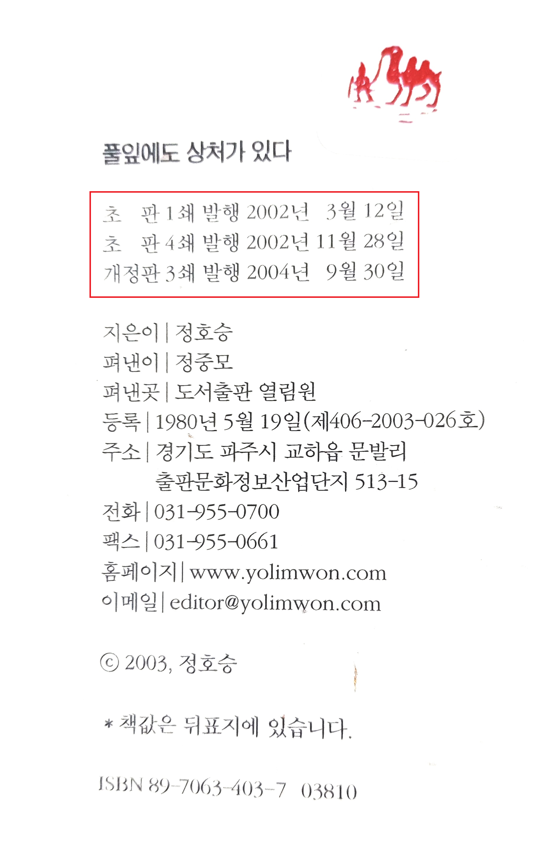 정호승 시인의 〈풀잎에도 상처가 있다〉의 ISBN을 넣어 검색해보았다.